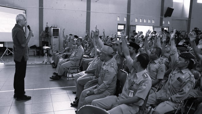 Gubernur Jawa Tengah Ganjar Pranowo memberi bantuan instrumen gamelan kepada dalang asal Jepara, Sugiyarto. Berkat bantuan tersebut, Sugiyarto kini tidak perlu lagi latihan Karawitan diiringi musik dari mulut.